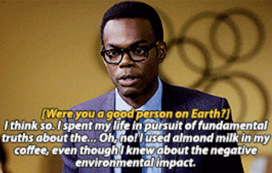 In The Good Place, Chidi Anagonye was a Professor of Moral Philosophy before he died. He literally spent his life obsessing over how to be a good person. So when he's introduced to Eleanor Shellstrop in the afterlife, he's presented with a moral Catch-22.