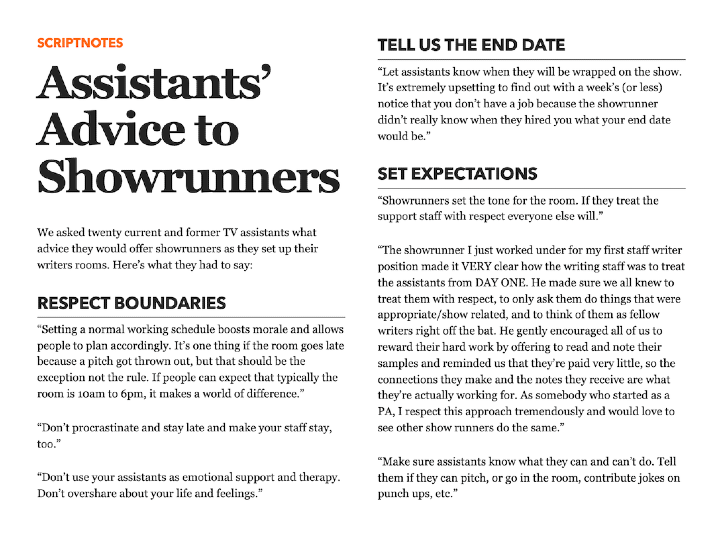 Assistants’ Advice for Showrunners
