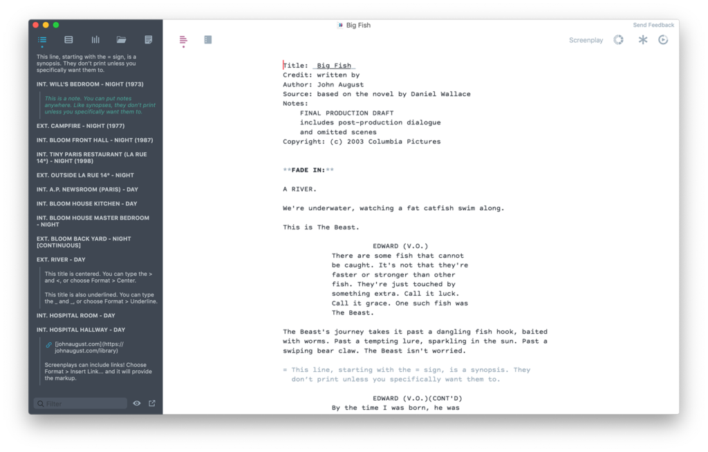 - 2014 — From utility to editor. By 2014, I was describing Highland as a bona fide screenwriting app because more and more writers (well, me at least) were writing entire scripts in it. The Editor pane, which had originally been there just to fix problems, became more powerful.