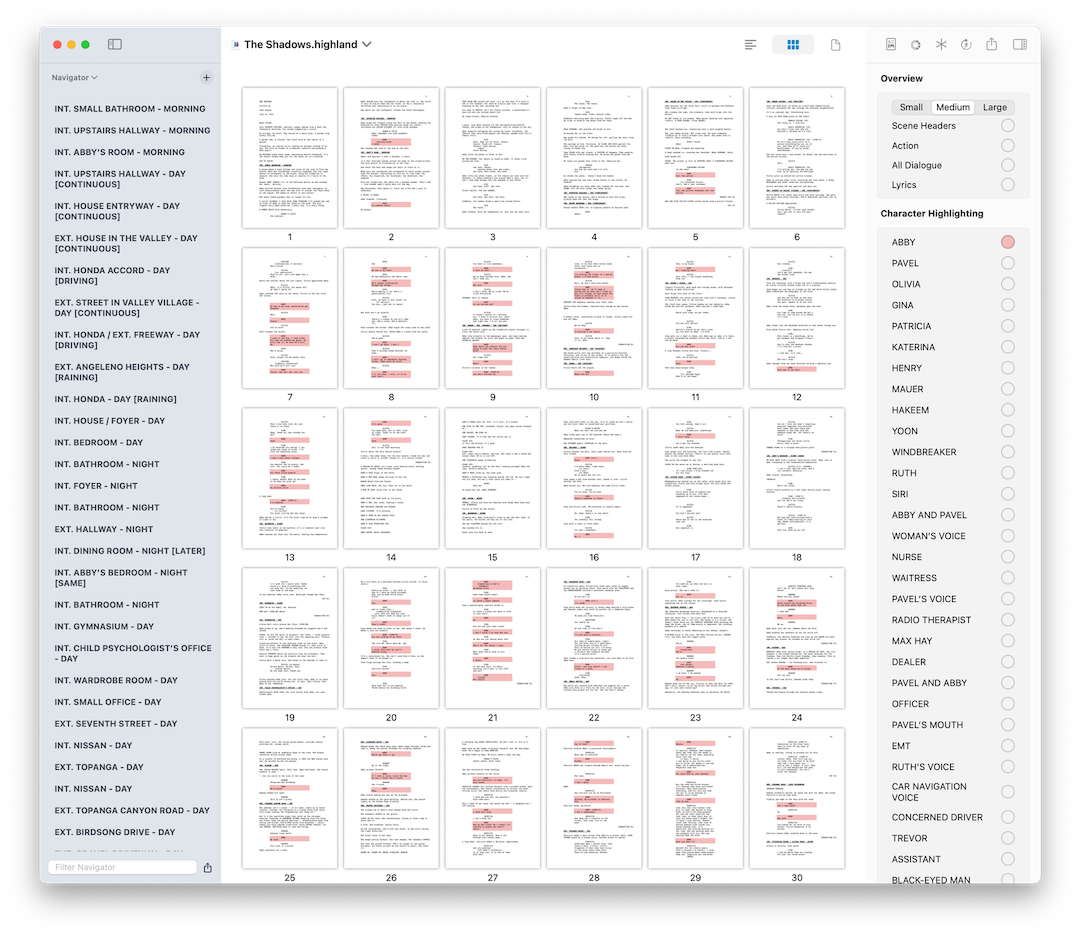 - March 2025 — Highland Pro launches. It's version 3.0, but we stop putting the number after the name. This was a rewrite from the ground floor, replacing 95% of the existing code. The UI is completely refreshed, and for the first time, Highland is cross-platform withMac + iPad + iPhone. We added /lookup and the Shelf on the right side, and moved to a single subscription for all platforms with a 30-day free trial.