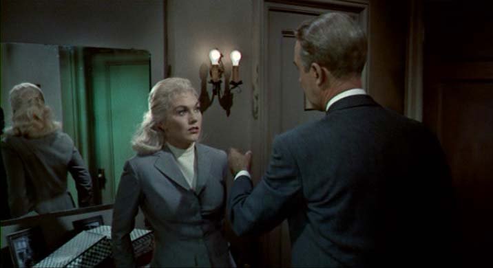 On the one hand, Scottie spends the back half of this movie trying to turn Judy into a recreation of Madeleine, the woman he loved who he saw fall to her death. It’s right on the line, where we have the Pygmalion-style idealization along with the Frankensteinian desire to unnaturally resurrect the dead.
