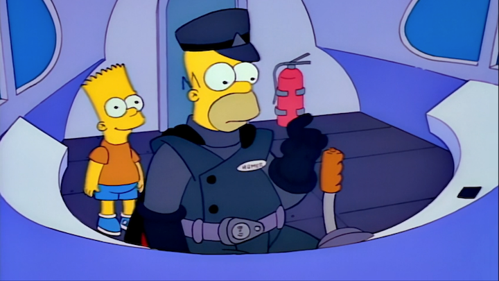 Marge rushes the expert back to Springfield, where Cobb is able to talk Homer through how to safely stop the monorail and save everyone onboard. Marge’s committment to her goal and resourcefulness save the day, bringing the right people together to prevent Lanley’s grift from having deadly consequences for Springfield.